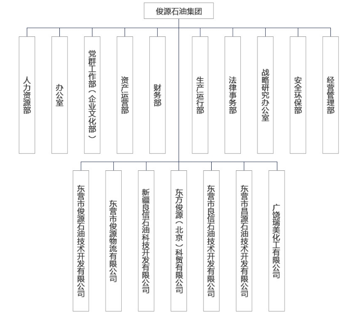 俊源石油集团始建于2009年,注册资本1.6亿,是以东营市俊源石油技术开发有限公司为依托,逐步发展和完善的综合性集团。经过六年的不断发展和壮大,俊源石油集团旗下有东营市俊源石油技术开发有限公司、东营市良信石油技术开发有限公司、东营市昌源石油技术开发有限公司、东营市俊源物流有限公司、新疆良信石油科技开发有限公司5家子公司,另外俊源环保新材料科技开发有限公司正在筹建中,六家子公司共同构成了俊源石油集团完整的石油精加工产业链,产业链囊括了优质、齐全的产品,便捷、高效的物流,专注、敬业的售后。目前集团资产总额为15亿,固定资产为12亿元,占地近1000亩,职工500余人,年产可达50万吨,年产值达30多亿。
