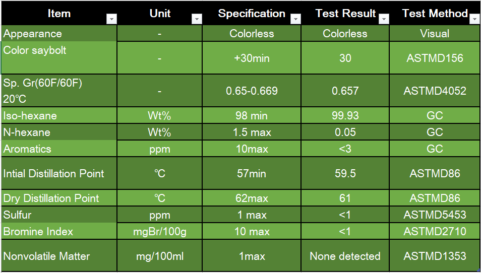 | Isohexane,99% | 73513-42-5 | 2901100000 | Drums | mt | 10.40 |