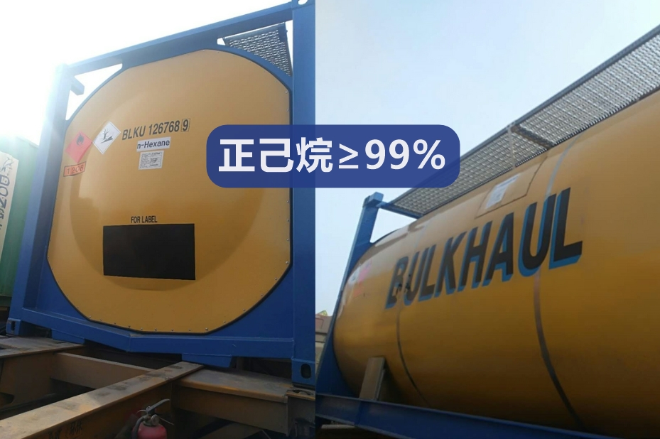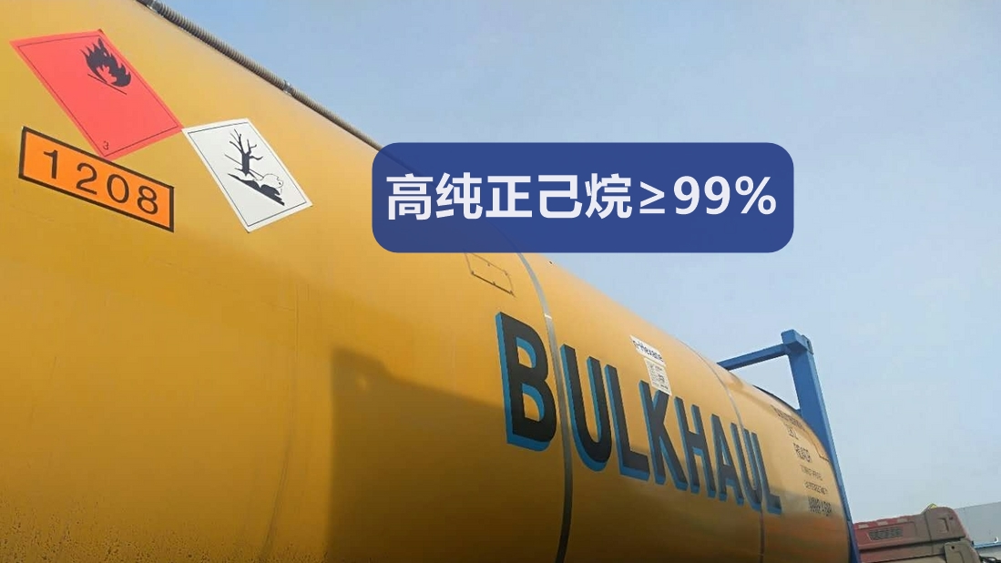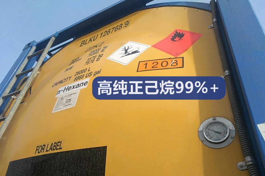 高纯正己烷(≥99%)在常温常压下为无色透明、微带异味的液体能溶解各种烃、卤代烃化合物通常用作为溶剂和添加剂。罐装高纯正己烷装箱量为15吨/ISO罐.